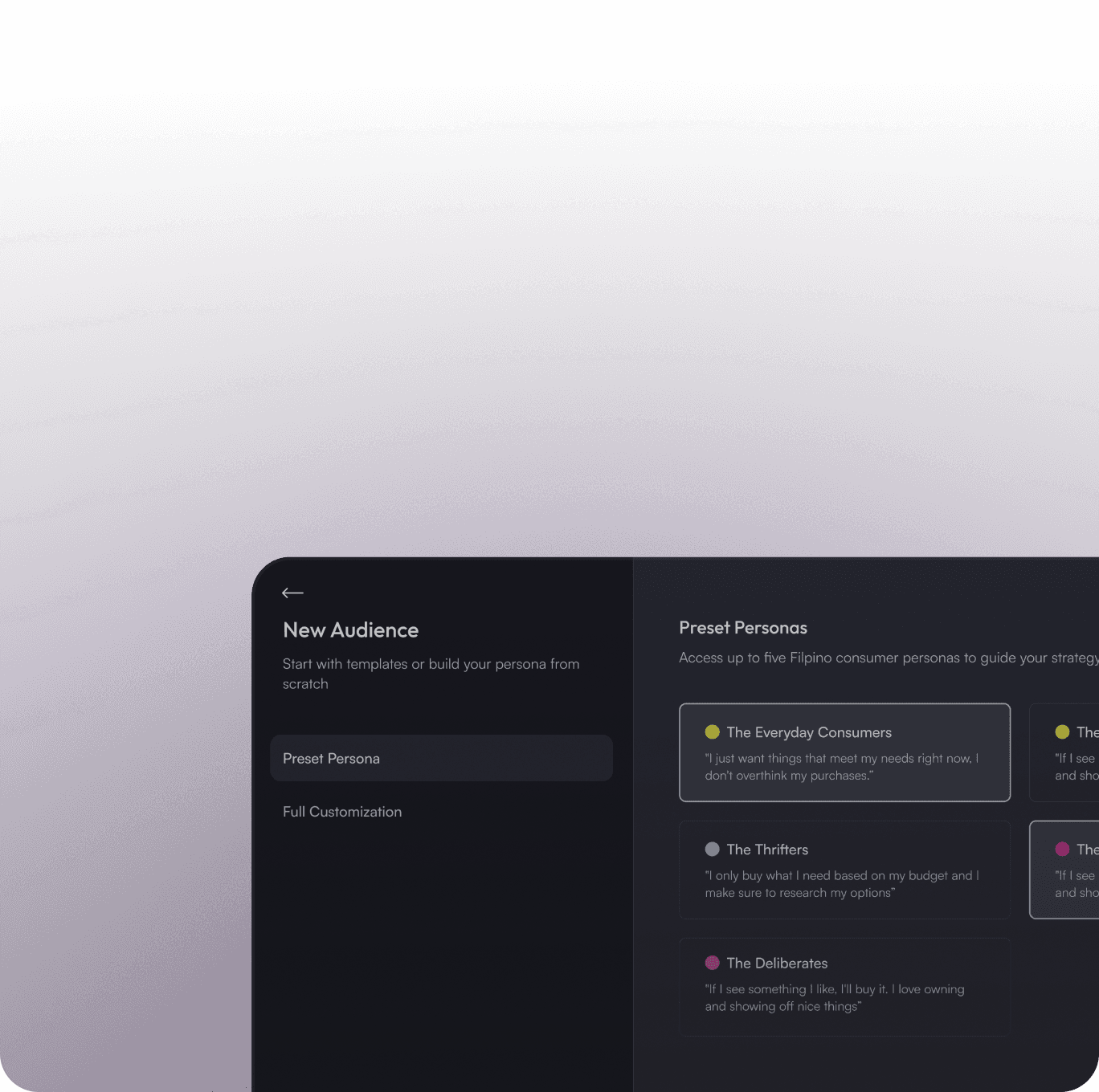 Select from hundreds of pre-built segments or create custom cohorts based on demographics, psychographics, and values.